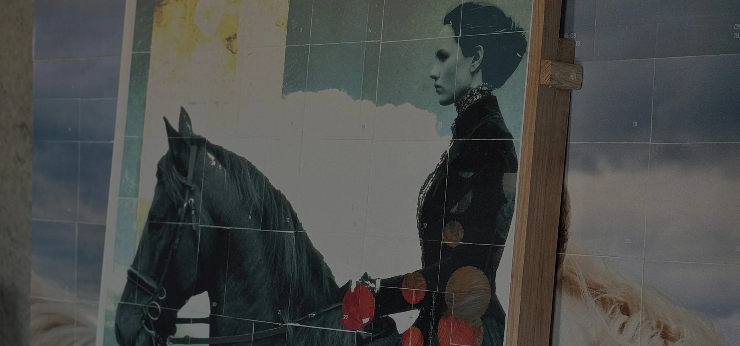 The Rugged Grace Collection is a body of original equestrian fine art that explores the quiet tension and refined discipline between horse and rider. Each piece is constructed through layered paper surfaces, compositional fragments, and hand-applied interventions — pressed and stitched by hand, then scored, marked, and drilled to reveal both precision and vulnerability.